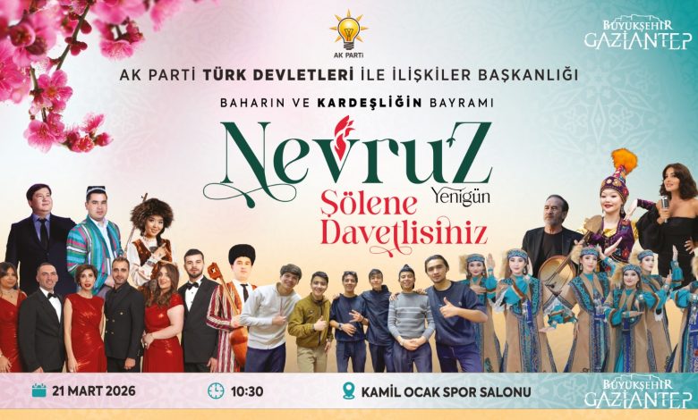 21 Mart 2026 Cumartesi günü saat 10.30’da Kamil Ocak Kapalı Spor Salonu’nda gerçekleştirilecek programda Türkiye’den ve Türk dünyasından çok sayıda devlet temsilcisi, davetli ve vatandaş bir araya gelecek. Nevruz’un asırlardır Türk dünyasında birlik, dayanışma ve ortak kültürel değerlerin sembolü olarak kutlandığına dikkat çekilen programda, farklı ülkelerden gelen temsilciler Gaziantep’te buluşacak.