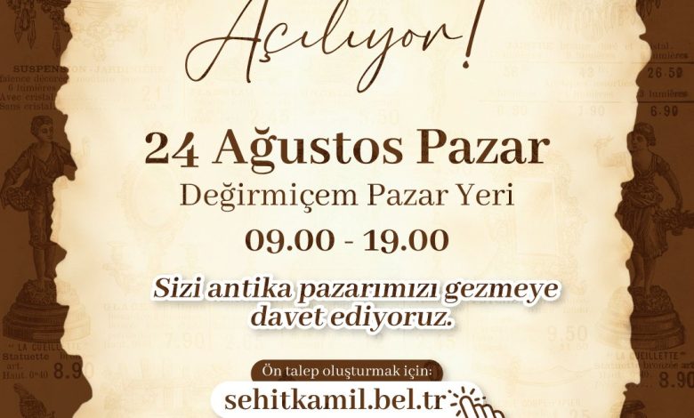 Şehitkamil Belediye Başkanı Umut Yılmaz’ın duyurusunu yaptığı Şehitkamil Antika Pazarı, bu hafta kapılarını açıyor. Eski zamanların ruhunu taşıyan eşsiz parçalar ve koleksiyonluk objelerin yer alacağı pazara antika tutkunlarını bir araya getirecek.